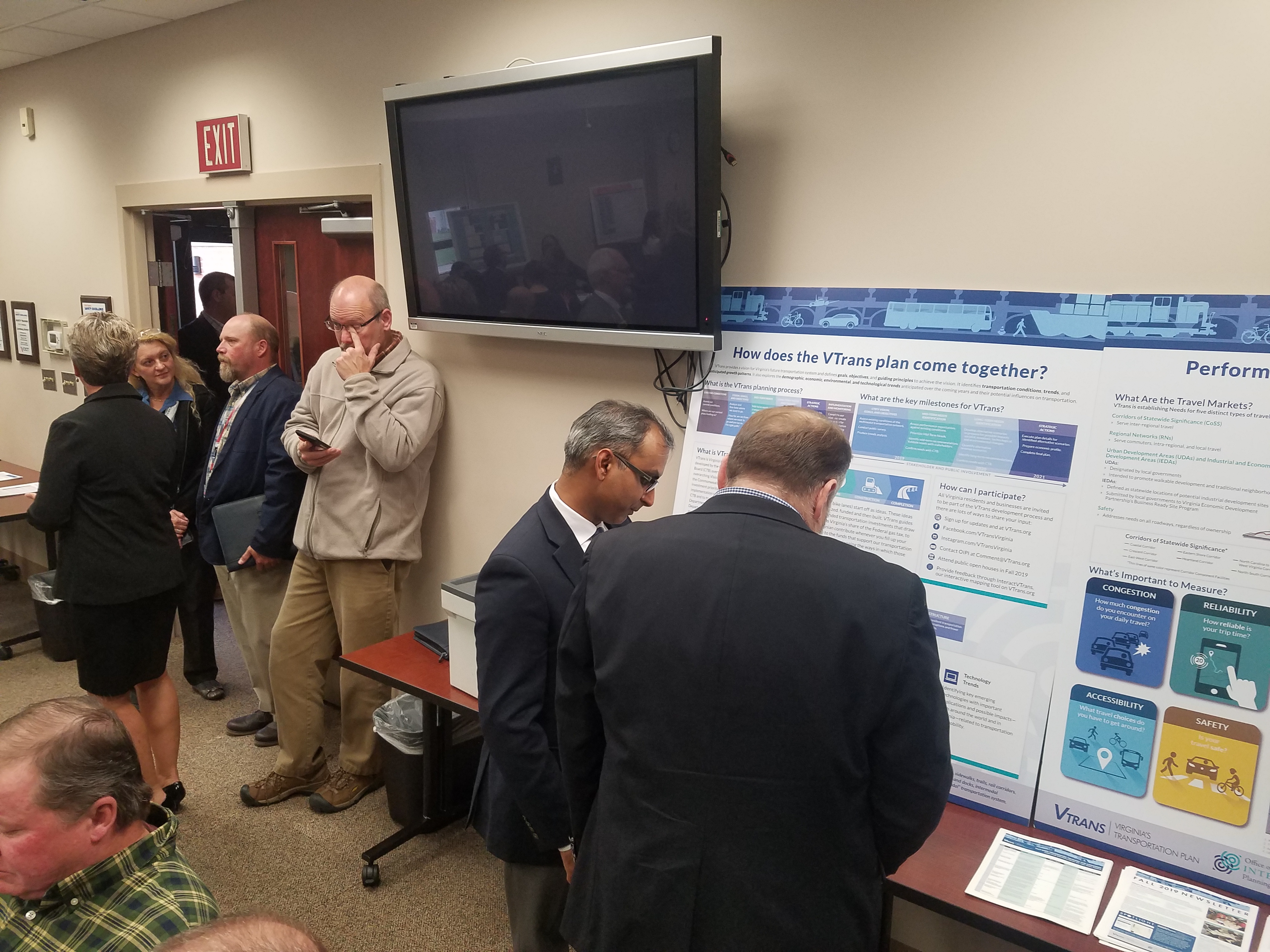 This open house took place in the same location as, but an hour ahead of, the Spring Transportation Meetings in each District. The purpose of the Spring Transportation Meetings is to discuss the draft FY2020-2025 Six Year Improvement Program with members of the Commonwealth Transportation Board, Virginia Department of Transportation, and Virginia Department of Rail and Public Transportation.